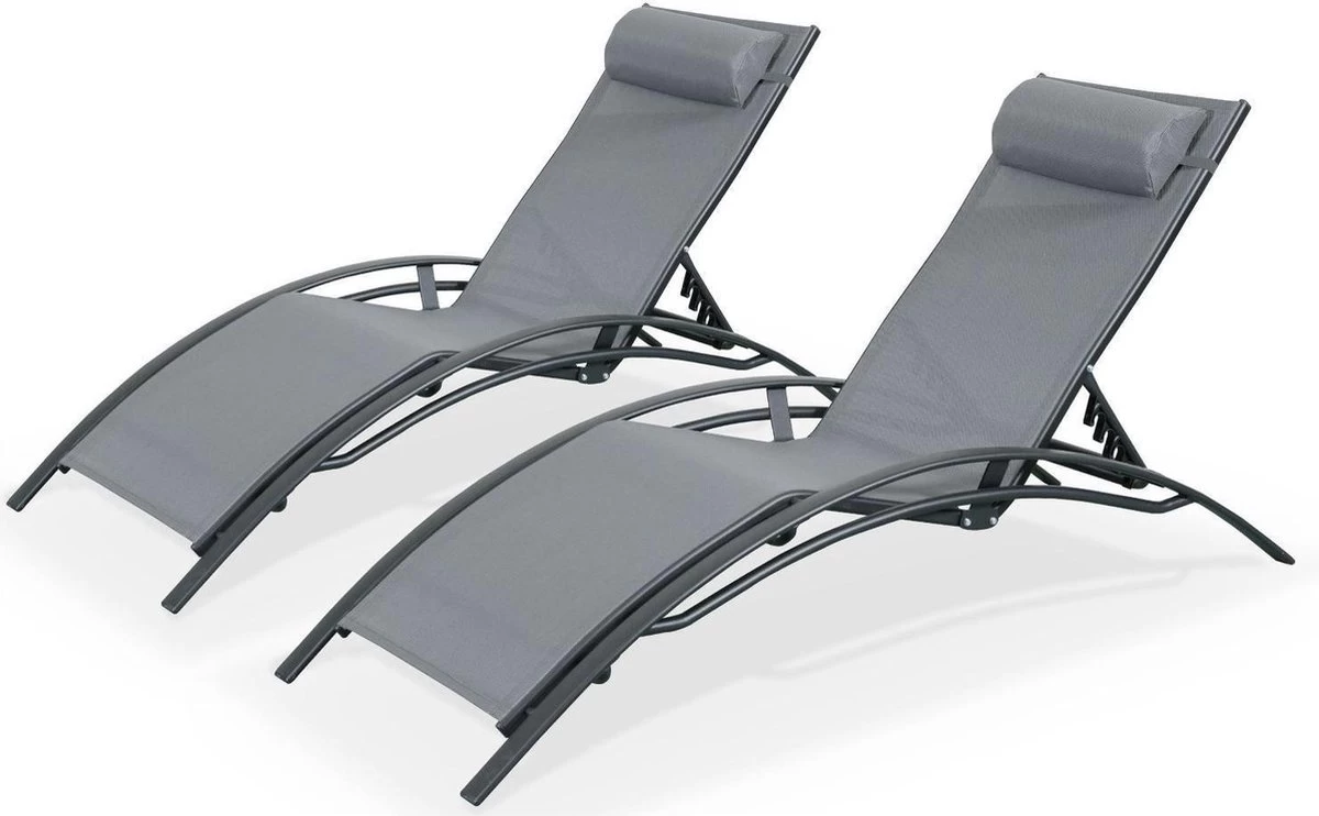 Alice’s Garden Louisa Ligstoelen – Aluminium/Textileen – 1,67 M – Antraciet/Grijs