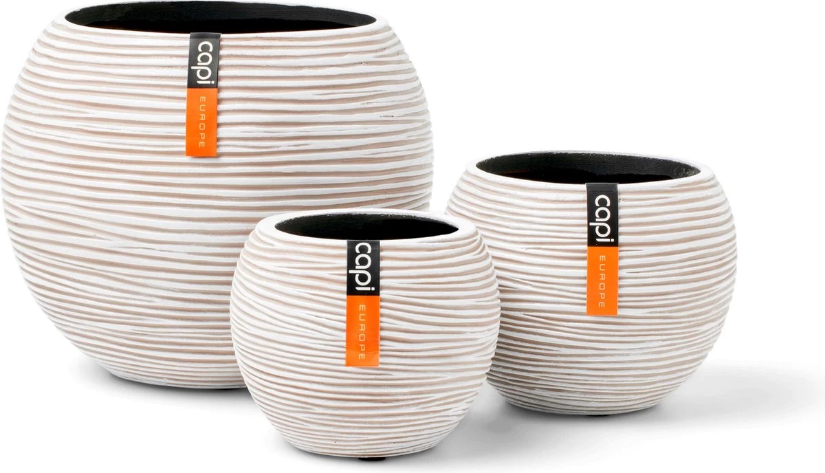 Deze set bevat 3 ivoorkleurige indoor potten uit onze all time favourite Nature Rib collectie. Deze set heeft een bijzondere uitstraling dankzij de geribbelde structuur. De textuur van de Rib is geïnspireerd op vlechtwerk met zijn elegante lijnen, waardoor een ritmisch gevoel ontstaat. De ivoorkleur geeft deze pot een zachte, maar verfijnde uitstraling.
