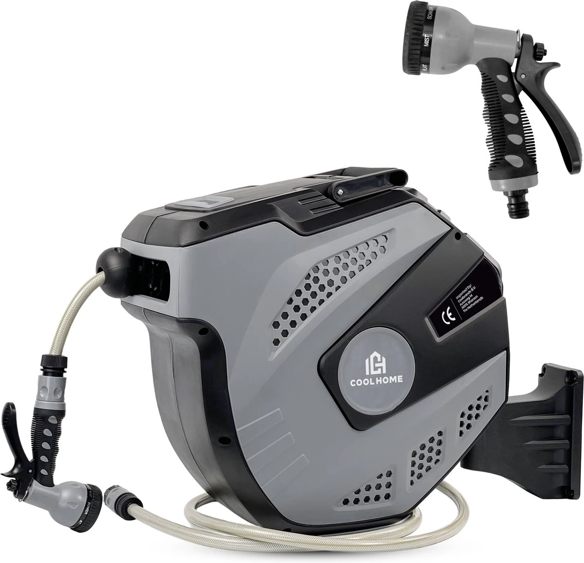 CoolHome Wandslangenbox 30 Meter + 2 Meter – Tuinslang Met Haspel- Slangenhouder 180° Draaibaar – Tuinslanghaspel Zwart – Grijs