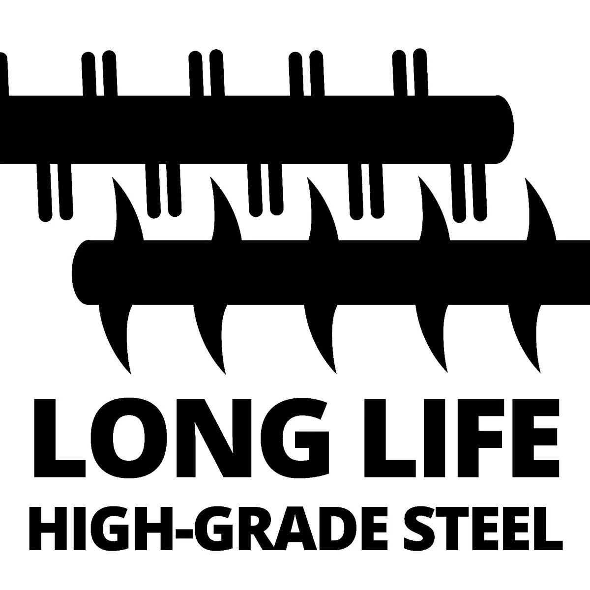 Bij verticuteren snijden de messen verticaal in het gras en dit is bedoeld om mos, onkruid en oud gemaaid gras te verwijderen. Op deze manier ontstaat ruimte voor nieuw, gezond gras waarbij ook de toevoer van mest en water beter functioneert na het verticuteren. Daarnaast word een beluchtingsrol met achtenveertig klauwen met de machine meegeleverd. Bij beluchten zorg je ervoor dat er beluchtingsgaten in het gazon worden geboord wat zorgt voor meer zuurstofopname van het gazon en een betere doorvoor van (regen)water. Op deze manier kunnen de wortels van het gras weer groeien. De machine beschikt over drie verschillende werkdieptes, namelijk: 3, 6 en 9 millimeter. Zo kan de werkdiepte heel nauwkeurig worden afgesteld bij de werkzaamheden die moeten worden uitgevoerd.