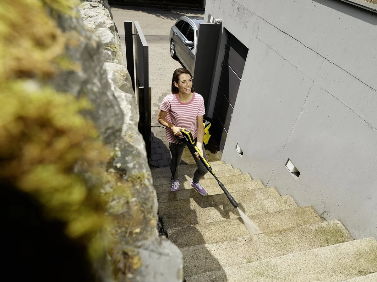 Met de K 4 Premium Power Control hogedrukreiniger kan elk oppervlak met de juiste druk worden gereinigd. Om de juiste druk te vinden, ondersteunt de in de Kärcher Home & Garden-app geïntegreerde toepassingshulp de gebruiker met praktische tips voor elke reinigingssituatie en reinigingsobject – voor perfecte reinigingsresultaten. De app biedt ook andere handige functies, zoals montage-instructies, verzorgings- en onderhoudsinstructies, evenals het Kärcher-serviceportaal. Voor maximale controle kan het drukniveau worden ingesteld door de spuitlans te draaien en te controleren op het G 160 Q Power Control spuitpistool. De algehele bediening is heel eenvoudig dankzij de handige ingebouwde slanghaspel. Andere uitrustingsdetails van de K 4 Premium Power Control zijn onder meer het Plug ’n’ Clean-systeem voor moeiteloos wisselen van het reinigingsmiddel, de telescopische handgreep voor comfortabel transport en de parkeerpositie voor gemakkelijk toegankelijke accessoires.