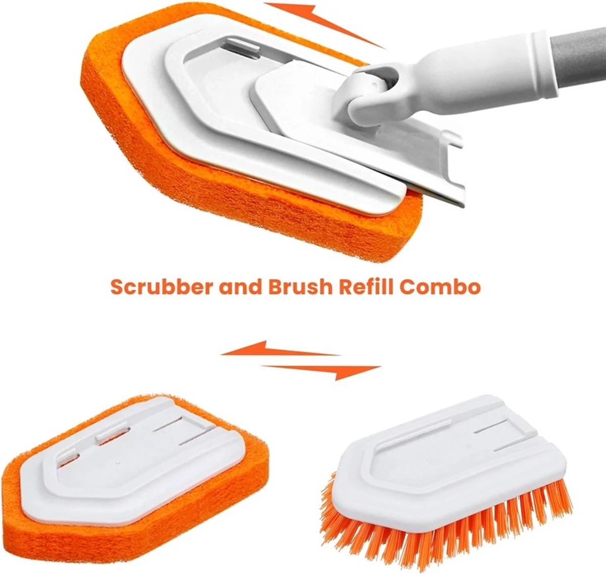 Merkloos Vloerschrobber – Bad Tegel Borstel Scrubber – Met 107cm Verstelbaar Lange – Voor Reiniging Badkamer Keuken Keramische Tegel – Oranje -Moederdag Cadeautje