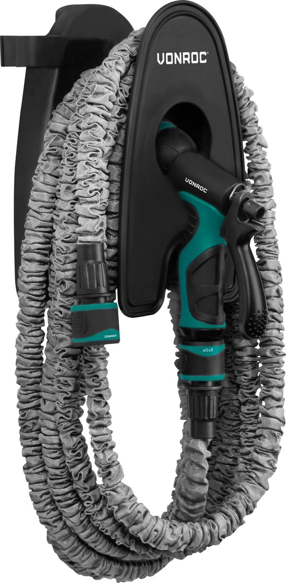 VONROC Tuinslang – Uitrekbare Tuinslang 10 Meter – Incl. Aansluitingen, Muursteun En Broespistool
