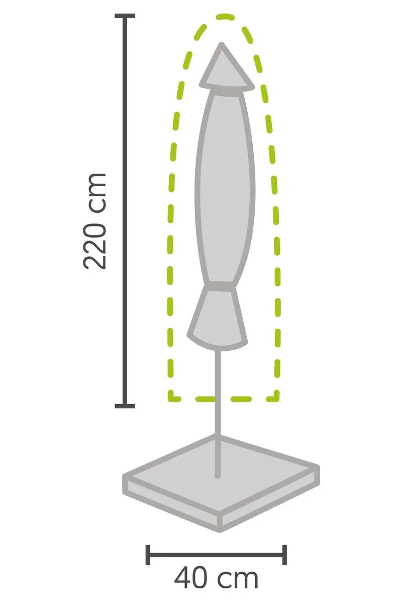 - Geschikt voor parasols met de volgende afmetingen: 250 x 250 cm, 250 cm rond, 300 x 300 cm, 300 cm rond;